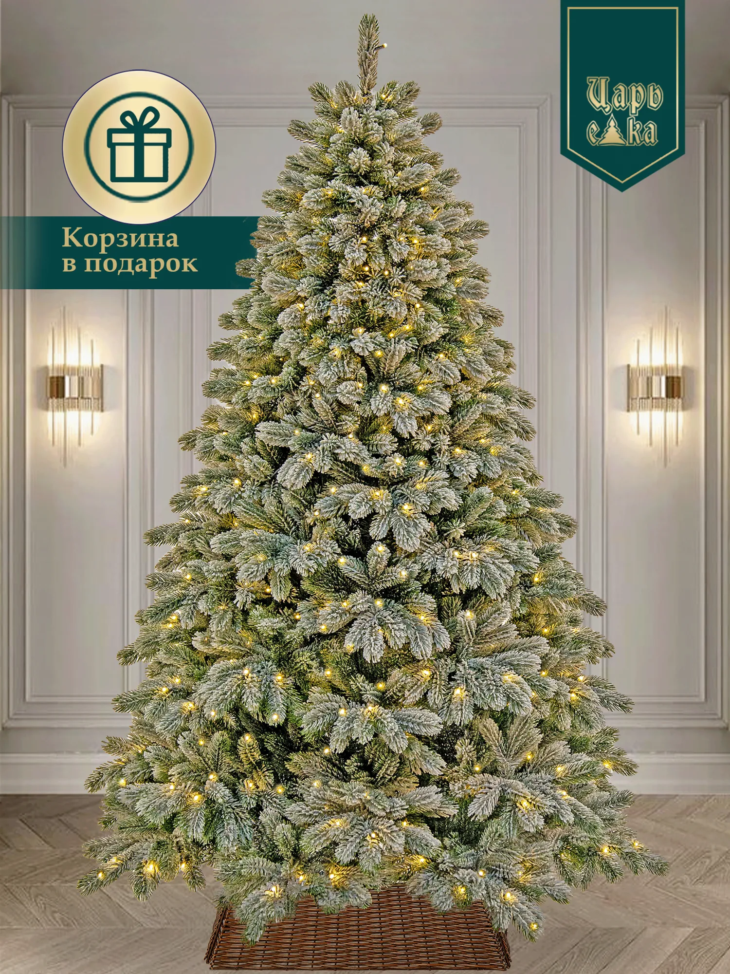 Искусственная новогодняя литая елка "Царская заснеженная с подсветкой" с заснеженными ветвями и встроенной гирляндой - это воплощение премиального качества и современного дизайна. Встроенные светодиодные лампочки с тёплым светом создадут волшебную атмосферу праздника, наполнив Ваш дом теплом и уютом.