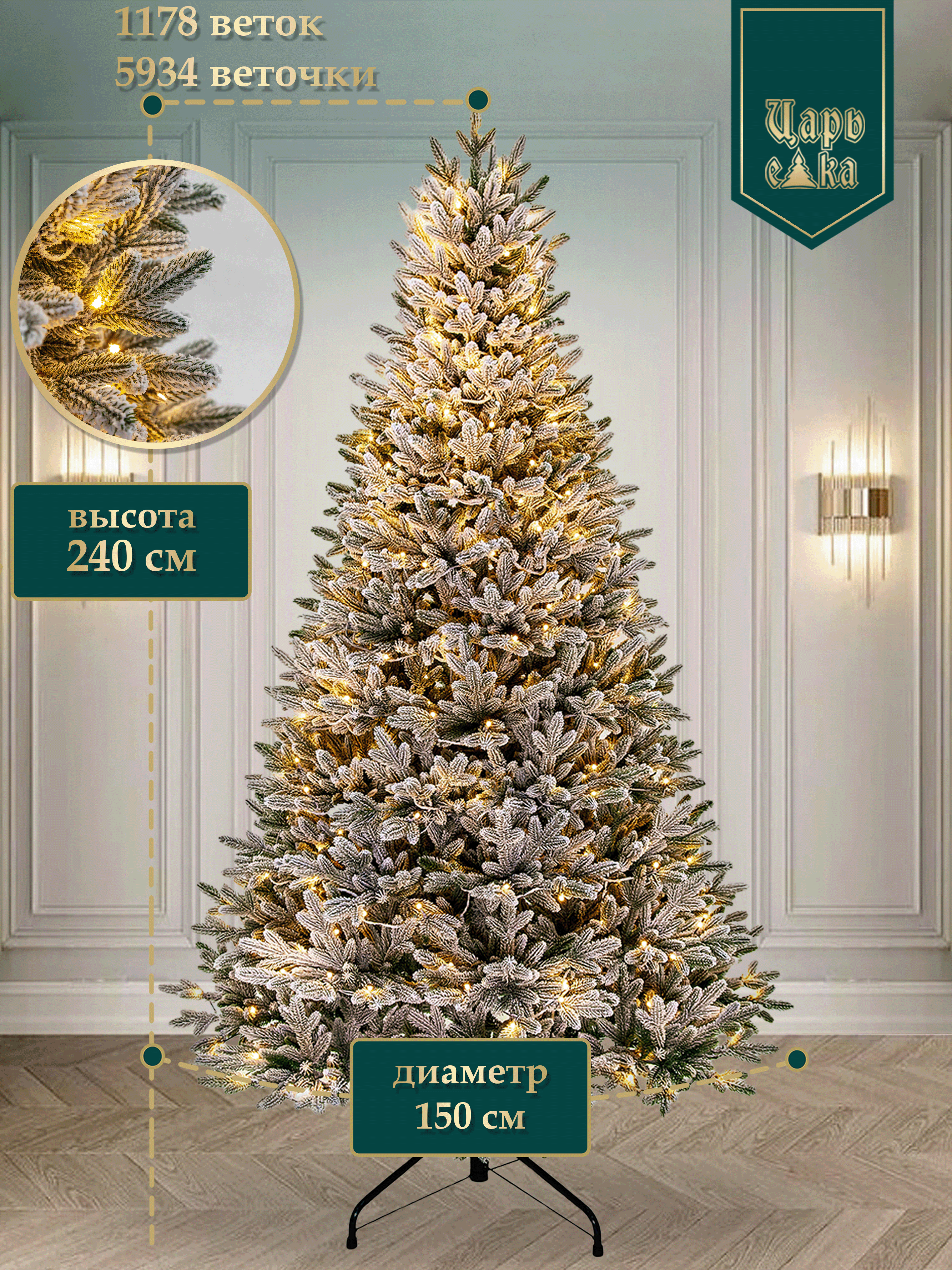 Компания «Царь Елка» предлагает Вашему вниманию разнообразие моделей, отражающих высокое качество и внимание к деталям. С размерным рядом от 180 до 240 см, наша ель соответствует любым пожеланиям и возможностям, позволяя каждому найти идеальный вариант для своего пространства.